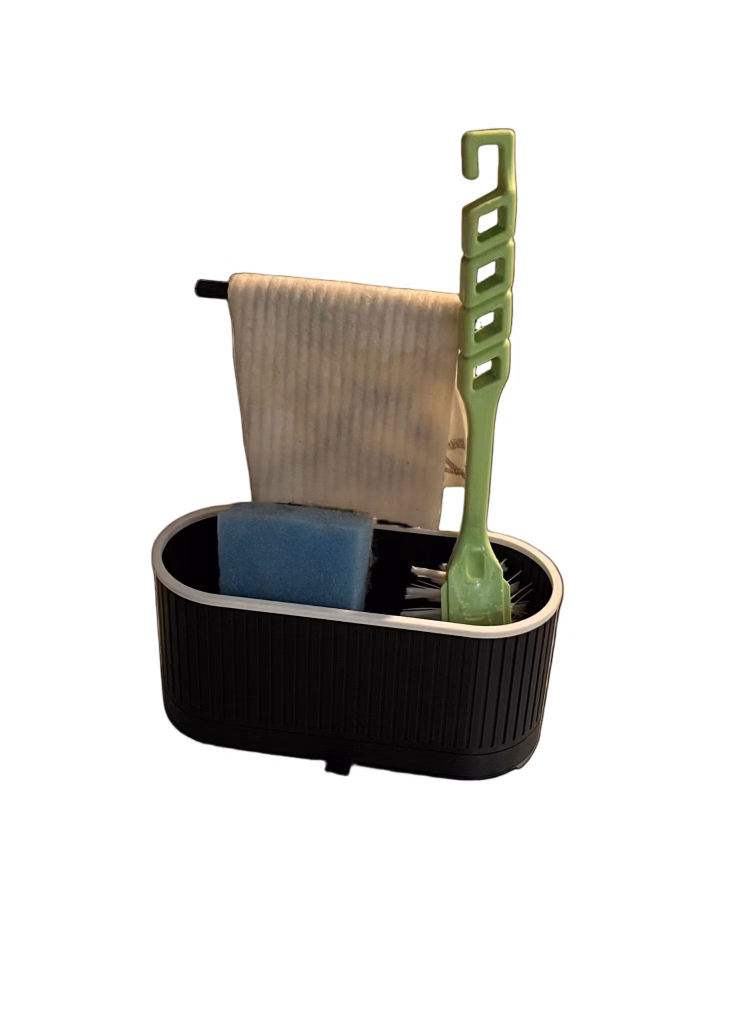 Säg hejdå till fläckar och smuts! Den innovativa designen säkerställer en snabb och skonsam torkning av disksvampar och diskborstar med avrinning till diskhon, vilket håller din bänkskiva ren och fläckfri.
